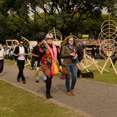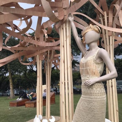 Además de las obras de diseño, en el sendero que rodea la flor, desfilaron modelos que llevaban piezas artísticas de madera, en línea con el eje del festival. Diseñadores de indumentaria, de interiores, carpinteros, ingenieros y otras especialidades, fueron algunas de las profesiones que integraron los equipos. La Plaza de las Naciones Unidas fue el escenario de una auténtica fiesta de diseño, que se completó con la oferta gastronómica de foodtrucks y de la mejor música.